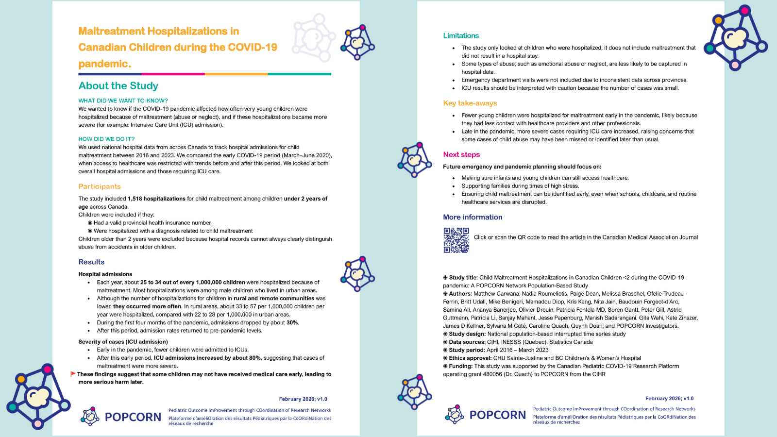 Nadia Roumeliotis, Matthew Carwana; Katie Charland, Ofélie Trudeau, Mike Benigeri, Mamadou Diop, Holly Agostino, Kate Zinszer, Isra Amsdr, Baudoin Forgeot d’Arc, Sylvana Coté, Nicole Basta, Patricia Fontela, Soren Gantt, Terry P Klassen, Caroline Quach, Quynh Doan; and POPCORN investigators. JAMA Pediatr. 2024. doi:10.1011/jamapediatrics.2024.2044