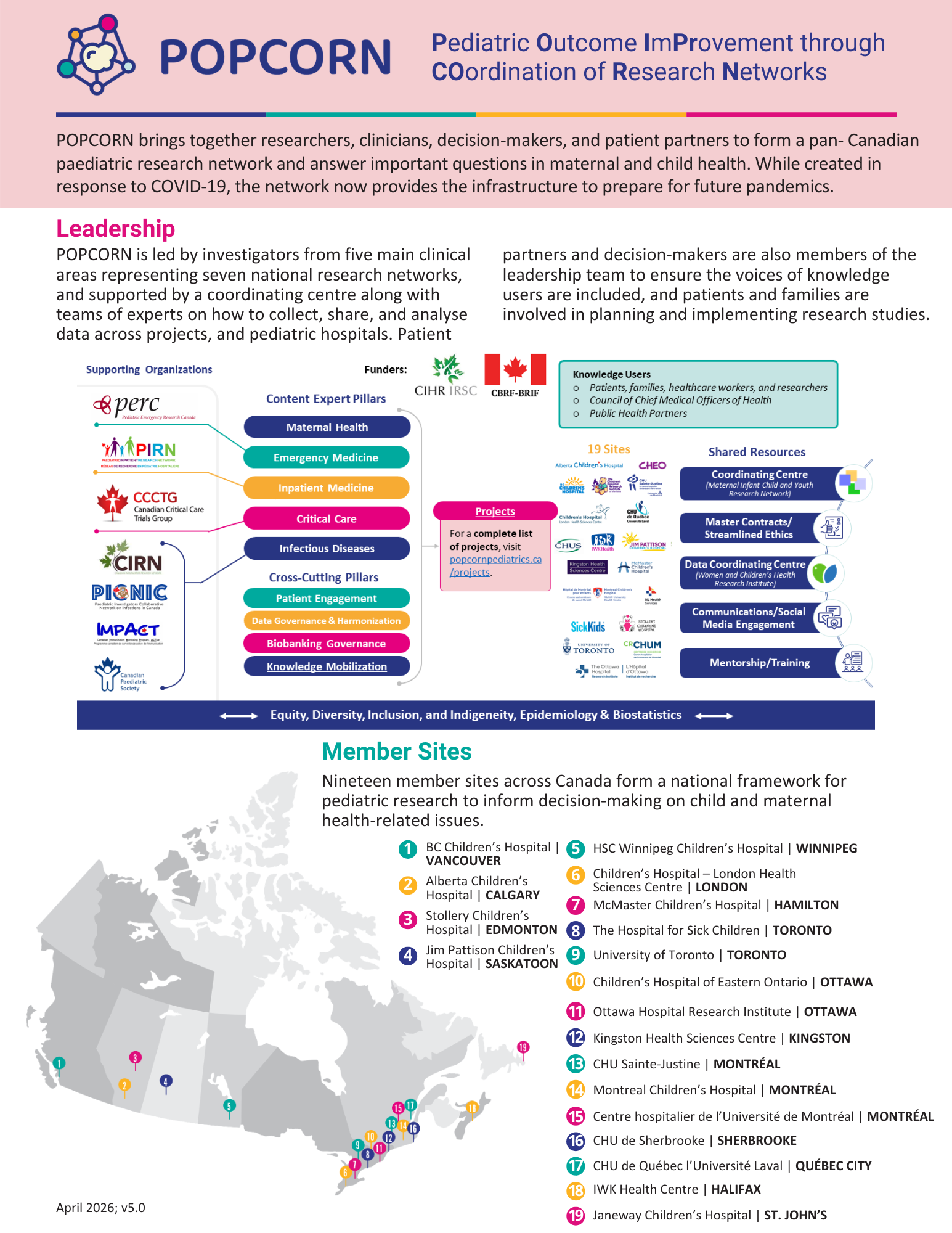 Our fact sheets give a comprehensive introduction to the POPCORN network. Inside, you’ll find details about our leadership and network structure, a map of member sites, and other key information. These fact sheets are available for both collaborators and patients and families.