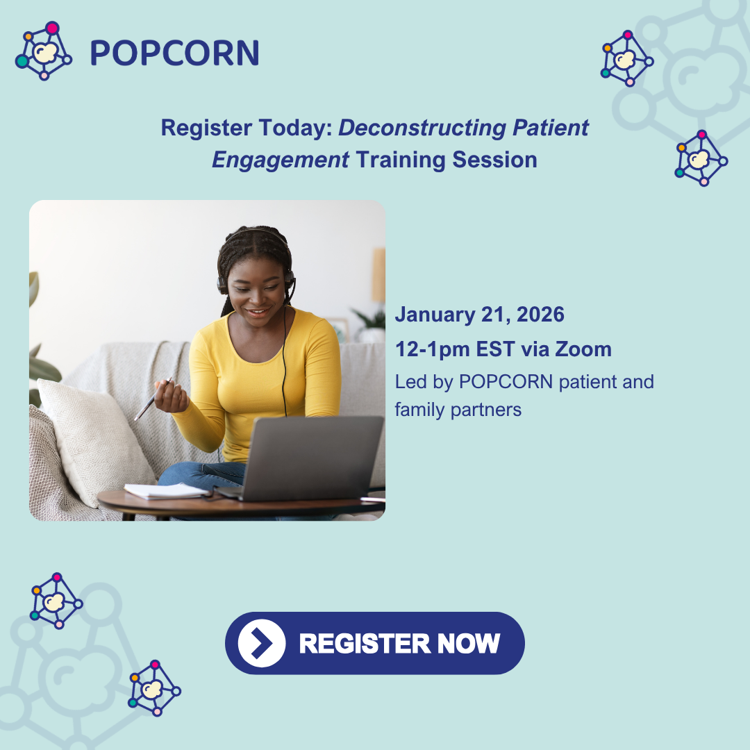 Register Today! POPCORN will be hosting a three-part training series, Deconstruct to Reconstruct: Patient Engagement Training Series, in early 2026. This series will deliver patient engagement training to empower researchers, research staff, and trainees with practical skills to meaningfully engage people with lived and living experience.
