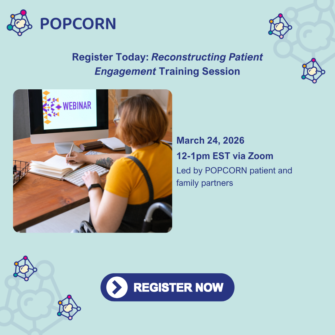 This patient and family partner-led initiative came from a recent POPCORN needs assessment survey that identified patient engagement training as a significant research education gap. Participants from coast to coast will be engaged through interactive exercises developed and led by people with lived and living experience (POPCORN patient and family partners).